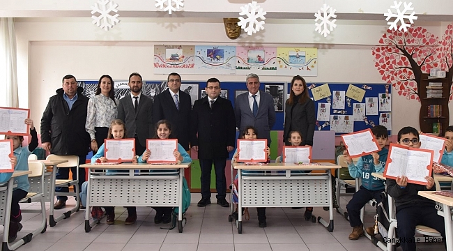 Çan ilçesinde eğitim gören öğrencilere karneleri törenle verildi.