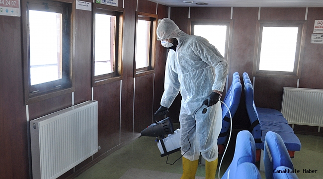 Çanakkale Boğazı’nda deniz ulaşımını sağlayan GESTAŞ, Çanakkale iskelesi ve boğaz hattında çalışan gemileri ilaçlayarak dezenfekte ediyor.