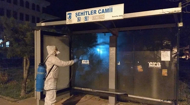 Çanakkale’de salgın hastalık riskine karşı otobüs durakları da dezenfekte edildi.