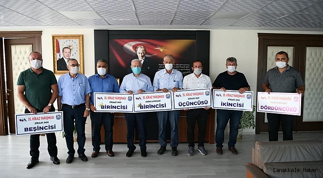 Lapseki ilçesinde düzenlenen kiraz yarışmasında dereceye giren üreticilere ödülleri verildi.