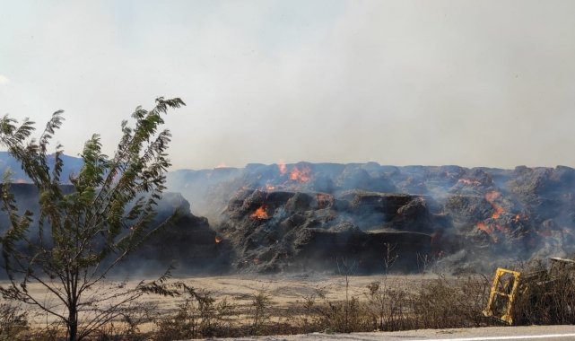 30 bin ton mısır silajı balyasının bulunduğu depoda yangın çıktı