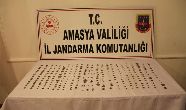 Amasya'da jandarmanın yaptığı operasyonda tarihi eser olduğu değerlendirilen 312 adet obje ele geçirildi.
