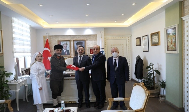 Tokat Onbeşli Torunları Derneği Başkanı Saffet Gümüş, Dernek Üyeleri Fatma Köse, Muhammed Kazım Coşgun ve Ali Güçlü Vali İlhami Aktaş’ı makamında ziyaret etti. 18 Mart Şehitleri Anma Günü ve Çanakkale Deniz Zaferi'nin 107. Yıl Dönümü münasebetiyle gerçekleştirilen ziyarette Vali İlhami Aktaş, Tokat Onbeşli Torunları Derneği Başkanı Saffet Gümüş ve beraberindekilerle bir süre görüşerek sohbet etti. Vali Yardımcısı Hakkı Uzun’un da bulunduğu ziyarette; “4. Geleneksel Torundan Dedeye Vefa Yürüyüşü” kapsamında İstanbul İli Esenler Belediye Başkanı Mehmet Tevfik Göksu’dan aldıkları ve 375 kilometre yol yürüyerek taşıdıkları Türk Bayrağı’nı 18 Mart Şehitleri Anma Günü ve Çanakkale Deniz Zaferi'nin 107. Yıl Dönümünde gerçekleştirilecek programda Cumhurbaşkanı Recep Tayyip Erdoğan’a takdim etmek üzere Çanakkale’ye gelen Dernek Başkanı Saffet Gümüş ayrıca yürürken taşınan diğer Türk Bayrağını da Vali İlhami Aktaş’a takdim etti. Ziyarette duyduğu memnuniyeti dile getiren Vali İlhami Aktaş, Dernek Başkanı Saffet Gümüş ve beraberindekilere teşekkür ederek günün anısına Minyatür Şehitler Abidesi hediye etti.