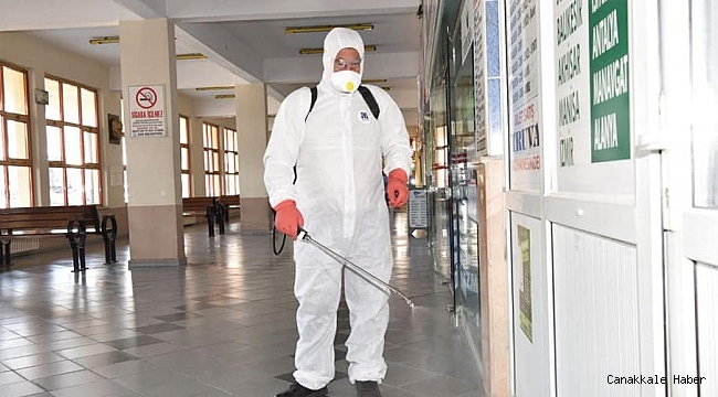 Çan ilçesinde otobüs terminalinde dezenfekte ve ilaçlama çalışmaları gerçekleştirildi.