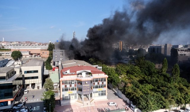 Bahçelievler'de bir mobilya fabrikasında yangın çıktı. Alev alev yanan fabrika havadan drone ile görüntülendi.
