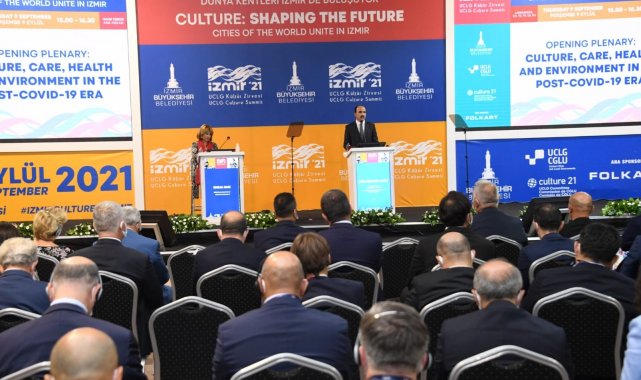 UCLG 2021 İzmir Kültür Zirvesi yapıldı. İzmir Kültürpark fuar hollerinde "Covid-19 Sonrası Kültür, Bakım, Çevre ve Sağlık" temalı oturumla başlayan zirveye Kültür ve Turizm Bakanı Mehmet Nuri Ersoy, UCLG Genel Sekreteri Emilia Saiz, UCLG Eş Başkanı ve Konya Büyükşehir Belediye Başkanı Uğur İbrahim Altay, Birleşmiş Milletler (BM) Kalkınma Programı Türkiye Mukim Temsilcisi Louisa Vinton, İstanbul Büyükşehir Belediye Başkanı Ekrem İmamoğlu, İzmir Büyükşehir Belediye Başkanı Tunç Soyer, protokol üyeleri ve 65 ülkeden temsilci katıldı. Oturumda konuşan UCLG Eş Başkanı ve Konya Büyükşehir Belediye Başkanı Uğur İbrahim Altay, İzmir'in düşman işgalinden kurtuluşu olan 9 Eylül'ü kutladı. Hazreti Mevlana'nın "Bu topraklara sevgiden başka tohum ekmeyiz" sözünden alıntı yapan Başkan Altay, "Tarihimizdeki bu hoşgörülü ve huzurlu ortam sayesinde uzun yıllar pek çok toplum bir arada yaşamış ve ülkemiz bir kültürel miras yuvası haline gelmiştir. Kültür zirvesinin, çok uzun yıllar boyunca birçok medeniyete ev sahipliği yapmış ve mükemmel bir kültürel birikime sahip olan Türkiye'de gerçekleşmesinden çok mutluyuz" ifadelerini kullandı.