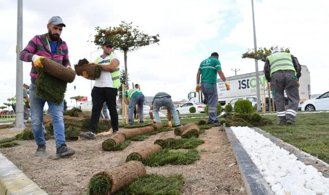 Aksaray Belediyesi, E-90 Karayolu güzergahındaki refüjlerde peyzaj düzenlemesi kapsamında hazır rulo çim serimi de yaparak TOKİ kavşağında ile şehri baştan aşağı yeşillendiriyor.