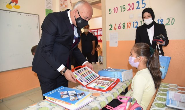 Başkan Bahçavan'ın konuşmasının ardından ise sınıfları ziyaret eden Dursunbey Kaymakamı Nurettin Yücel, Belediye Başkanı Ramazan Bahçavan ve Milli Eğitim Müdürü Ümit Gökdemir öğrencilere Boyama seti Çantalarını ve su mataralarını hediye ettiler.