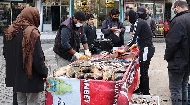 Vatandaşlardan Ahmet Uğraş, "Balık almaya geldim. Şanlıurfa Bozova Barajı'ndan getirilen balıklar ilgimizi çekiyor. Ben 8 büyük çupra balık aldım. Hava soğuk sağlıklı beslenmem gerekir" ifadelerini kullandı.