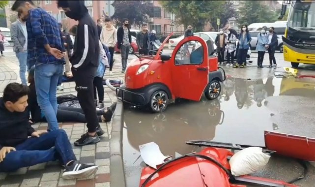 Halk otobüsü ile elektrikli araç çarpıştı: 3 öğrenci yaralandı