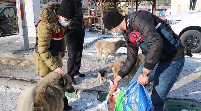 Ekiplerin mamalarını yiyen sokak hayvanlarını şefkatli ellerle sevdikleri anlar takdir topladı.