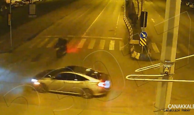 Çanakkale’de kavşağa kontrolsüz giren bir otomobil, motosikletle çarpıştı. Kazada motosiklet sürücüsü yaralanırken, o anlar da Çanakkale Emniyet Müdürlüğü Kent Güvenlik Yönetimi Sistemi (KGYS) kameralarına yansıdı.