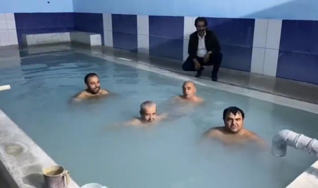 Kaymakam, havuza girip vatandaşları kaplıcalara davet etti