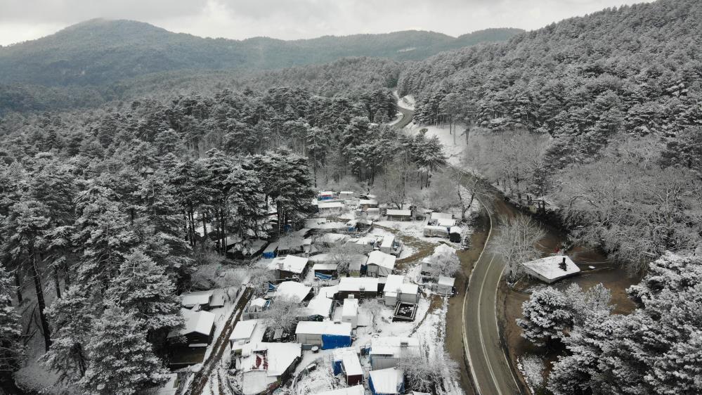 Kazdağları’nda kar manzaraları havadan görüntülendi