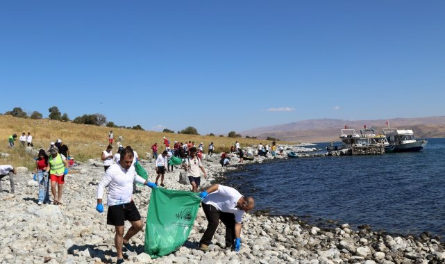 Van'da 'Uluslararası Kıyı Temizliği Günü' etkinlikleri kapsamında Van Büyükşehir Belediyesi'nin destekleriyle '1. Adır Adası Yüzme Festivali' kapsamında sahil temizliği yapıldı.