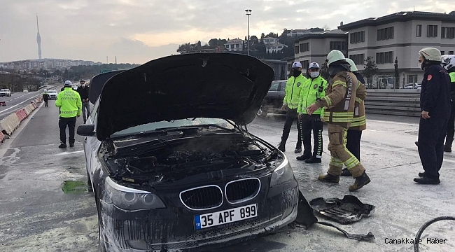 Olay, saat 12.45 sıralarında 15 Temmuz Şehitler Köprüsü girişi Ankara'dan Edirne istikametinde meydana geldi. 35 APF 899 plakalı BMW markalı lüks otomobil sürücüsü Melih Şengüler, köprüde polisin denetim yaptığı sırada aracından koku çıktığını fark etti. Otomobilin yanacağını fark eden Şengüler hemen yolun yan tarafına park etti. Otomobilin motor kısmında alevler yükselmeye başladı. Olay yerine itfaiye ekipleri sevk edilirken köprüde görevli polis memurları da araçta çıkan yangına müdahale etti. Lüks otomobilde çıkan yangın söndürüldü. Otomobil sürücüsünün sokağa çıkmak için izin belgesinin olduğu öğrenildi.