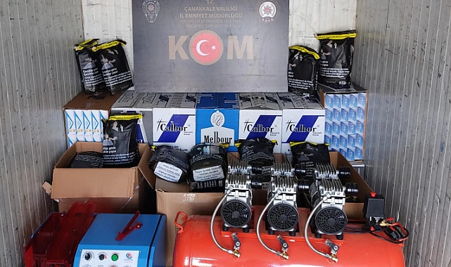 Edinilen bilgiye göre, İl Emniyet Müdürlüğü KOM Şube Müdürlüğü Kaçakçılık Suçları Büro Amirliği görevlilerince 07/11/2022 günü Çanakkale merkezinde ve Lapseki ilçesinde doldurma sigara ve makaron kaçakçılığıyla mücadele kapsamında düzenlenen operasyonda, Ü.E. ve K.H. isimli şahısların ikametinde arama yapıldı. Arama neticesinde toplamda; 1 adet hava kompresörü, 2 adet sigara sarma makinası, 37800 dal doldurma sigara, 130.000 dal boş makaron ve 68 paket tütün ele geçirildi. Ayrıca yapılan aramalarda idari yaptırım kapsamında 20 kilogram kıyılmış sarmalık kıyılmış tütün de bulundu. Haklarında adli işlem yapılan şüpheli Ü.E. ve K.H. isimli şahıslar, savcılık talimatıyla serbest bırakıldı.