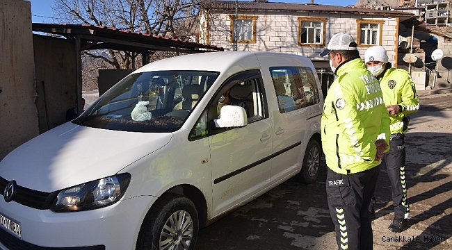 Trafik polisleri kent girişinde vatandaşlara maske uyarısında bulunurken HES kodu sorgulaması yapıyor.