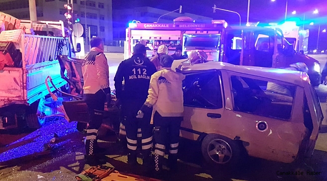 Edinilen bilgiye göre, Çanakkale Adalet Sarayı önündeki kavşakta meydana gelen trafik kazasında, H. Ö.’nün kullandığı 10 LT 046 plakalı otomobil, kırmızı ışıkta bekleyen F. Ö. yönetimindeki 17 AK 366 plakalı kamyonete çarptı. Çevrede bulunan vatandaşların ihbarı üzerine olay yerine sağlık, itfaiye ve polis ekipleri sevk edilirken, kazada kamyonet sürücüsünün eşi G. Ö. ve otomobil sürücüsü H. Ö. yaralandı. Yaralılara ilk müdahale olay yerinde yapıldı. İlk müdahalenin ardından yaralılardan G. Ö., Mehmet Akif Ersoy Çanakkale Devlet Hastanesi’nde tedavi altına alınırken, durumu ağır olan H. Ö. ise, Çanakkale Onsekiz Mart Üniversitesi (ÇOMÜ) Sağlık, Uygulama ve Araştırma Hastanesi’ne götürüldü.