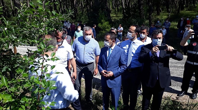 Vali İlhami Aktaş, Bayramiç ilçesinde dolu yağışının zarar verdiği tarım arazilerinde incelemelerde bulundu.