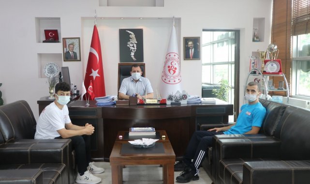Türkiye Jimnastik Federasyonu tarafından Mersin'de yapılan Parkur Türkiye Şampiyonasında Serbest Parkurda Türkiye üçüncüsü olan sporcu Murat Ekeroğlu ile antrenörü İbrahim Bilgin, şampiyona dönüşü İl Müdürü Ali İhsan Kabakcı'yı makamında ziyaret etti.
