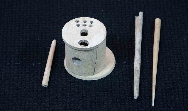 Erken Bizans Dönemine tarihlenen bu buluntu, Batı Kilise alanındaki arkeolojik kazılarda kemik iğne, bız ve saç tokası ile birlikte bulundu. Elde edilen bu buluntunun, tekstil ve dikiş-nakış işlemlerinde kullanıldığı değerlendiriliyor.