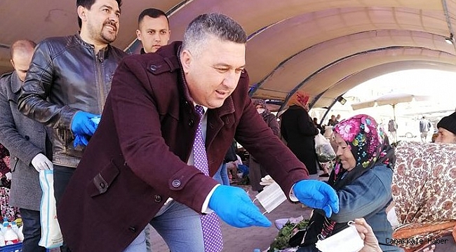 Ayvacık Belediye Başkanı Mesut Bayram, ilçede kurulan Cuma pazarında esnafı tek tek gezerek maske ve eldiven dağıttı.