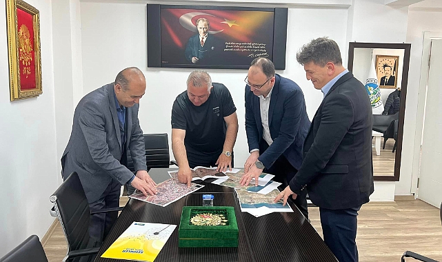 Geyikli Belediye Başkanı Mevlüt Oruçoğlu, Çanakkale Aksa Gaz Müdürü Çağdaş Adıbelli ile doğal gaz çalışmalarına ilişkin fikir alışverişinde bulundu.