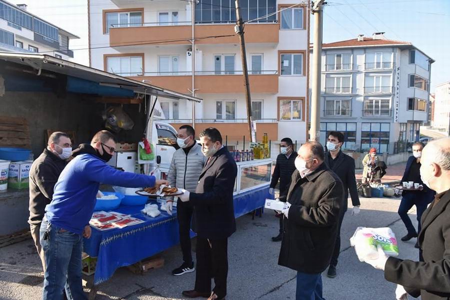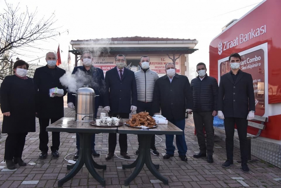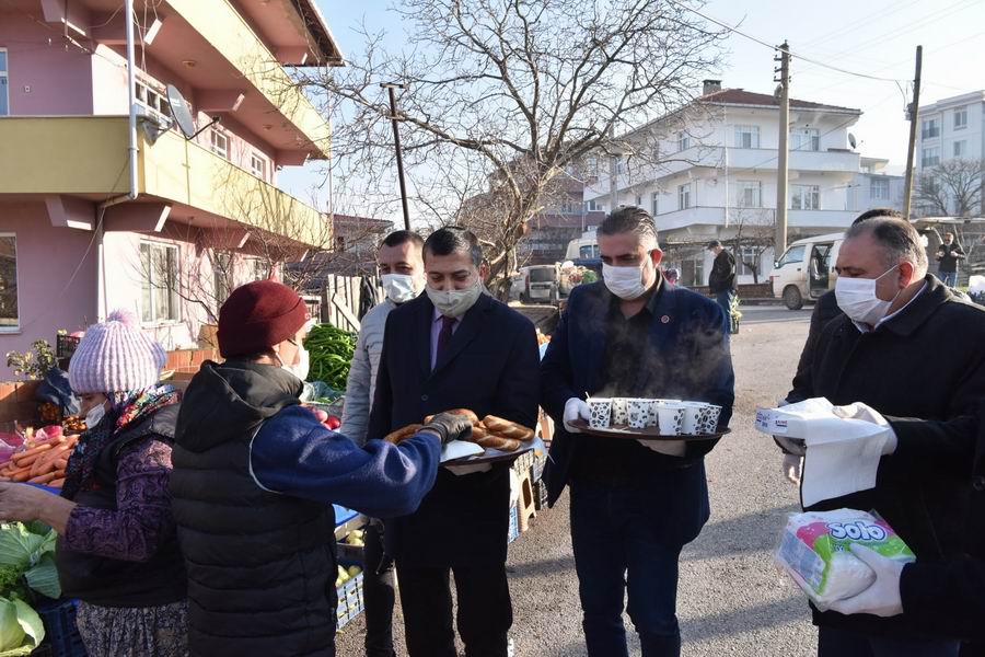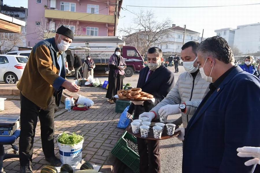 Çanakkale’nin Çan Belediye Başkanı Bülent Öz pazarcı esnafına ve vatandaşlara çay ile simit ikram etti.