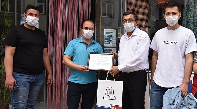 Çan ilçesinde çevreye karşı duyarlı olan esnafları ziyaret ederek teşekkür plaketlerini takdim eden Belediye Başkanı Bülent Öz; “Çevre sorunları konusundaki toplumsal farkındalığın artmasına katkı sağlayarak gelecek nesillere daha yaşanabilir bir Çan bırakmak için çıktığımız bu yolda bize destek vererek geri dönüşüme katkıda bulunan değerli esnaf ve sanatkarlarımıza teşekkür ediyorum” dedi.