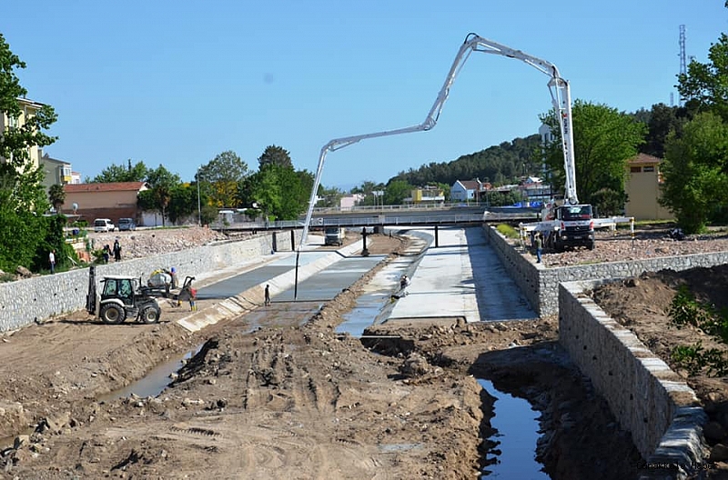 Ezine ilçesinde Akçın Çayı ıslah çalışmaları tüm hızıyla sürüyor.