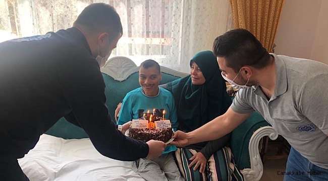 Biga Belediyesi, 26 yaşındaki engelli Ahmet Caner Kurtçu’nun doğum gününü evine ulaştırdıkları pastayla kutladı.