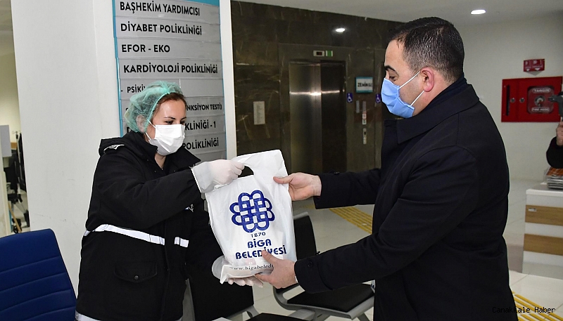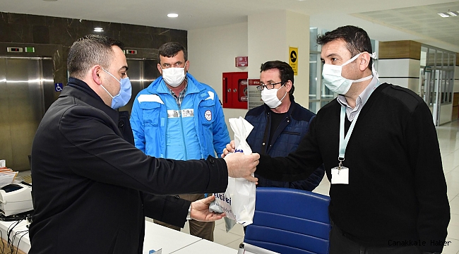 Biga Belediyesi, koronavirüs (Kovid-19) tedbirleri kapsamında kamu çalışanlarına hijyen paketi dağıttı.