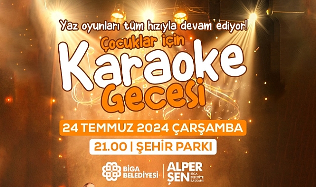 Biga Belediyesi’nden yapılan açıklamada; “Yaz oyunlarımız kapsamında yarın, Şehir Parkı’nda müzik dolu bir geceye hazır mısınız? Çocuklar için düzenlediğimiz Karaoke Gecesi’nde, minik yıldızlarımız sahne alacak ve en sevdikleri şarkıları söyleyecekler. Etkinliğimiz ücretsizdir ve tüm çocuklar davetlidir” denildi.