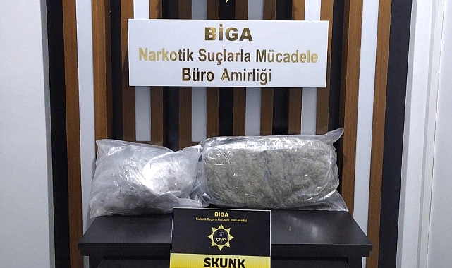 Biga ilçesinde Narkotik Suçlarla Mücadele Büro Amirliği ekipleri, 3 şüpheli şahsın üzerinde ve araçta arama yaptı. Aramada 1 kilo 682 gram skunk ele geçirildi.