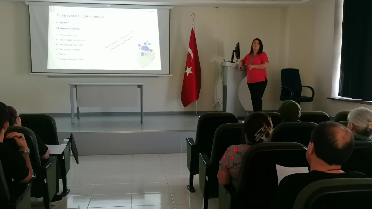 Enfeksiyon Kontrol Hemşiresi Melek Işık Apaydın tarafından sağlık çalışanlarına yönelik; enfeksiyon kontrol uygulamaları, el hijyeni kuralları konularında eğitim verildi. Eğitimde; sağlık hizmetlerinde enfeksiyonların önlenmesi, el hijyeninin önemi ve doğru uygulama yöntemleri detaylı olarak paylaşıldı. Eğitime katılım sağlayan tüm personele teşekkür edildi.