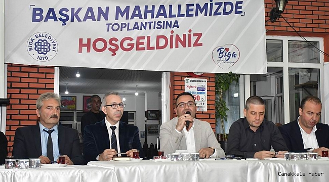 ‘Başkan Mahallemizde’ toplantılarının yaşanan sıkıntıların çözümü konusunda fikir alışverişinde bulunma, talepleri dinleme ve yapılan hizmetleri anlatma amacıyla düzenleneceğini ifade eden Biga Belediye Başkanı Bülent Erdoğan “Seçim çalışmalarımıza buradan başlamıştık. Nasip oldu mahalle toplantılarımızı da buradan başlatmış olduk. Bu toplantıların amacı yaptığımız çalışmaları sizlere anlatmak ve mahallemizde eksik olan, yapılmasını istediğiniz konuları görüşmek, hep birlikte çözmektir. Biz seçimden önce de her zaman ‘bizim rehberimiz sizler olacaksınız. Biz size sormadan hiçbir iş yapmayacağız dedik’ Hem hesap verebilirlik hem de şeffaflık anlamında bu toplantıları her mahallemizde gerçekleştireceğiz. Toplantımıza katılımınız için çok teşekkür ederim, hoşgeldiniz” diye konuştu.