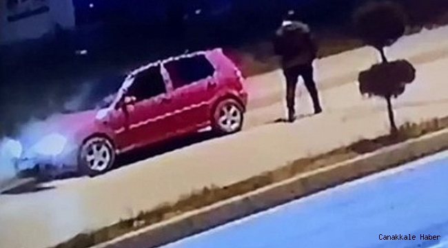 Otomobilin motorunda yaşanan patlama ve yangın güvenlik kameralarına yansıdı. Görüntülerde, araçta yaşanan patlamanın ardından çıkan yangın yer aldı.