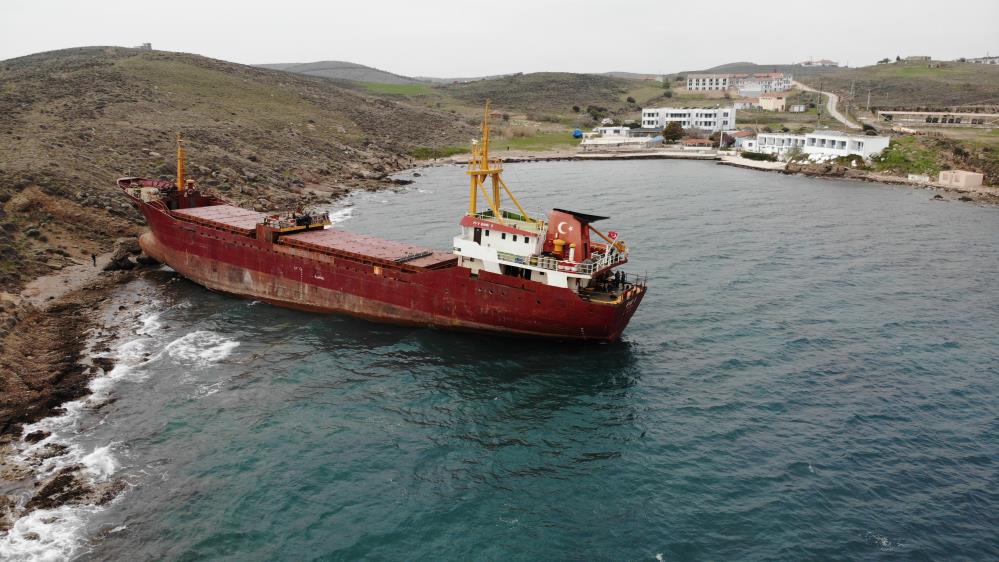 Çanakkale’nin Bozcaada ilçesinde karaya oturan ‘Banu-S’ isimli kargo gemisi kurtarılmayı bekliyor.