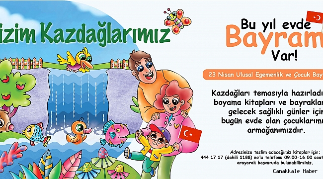 23 Nisan Ulusal Egemenlik ve Çocuk Bayramı için Çanakkale Belediyesi tarafından Kazdağları temasıyla hazırlanan boyama kitapları ve bayraklar, gelecek sağlıklı günler için bugün evde olan çocuklarla buluşturulacak. Kitap ve bayraklar adreslere teslim edilecek olup, hafta içi 09.00-16.00 saatleri arasında 444 17 17 (dahili 1188) numaralı telefondan başvuruda bulunabilirsiniz.