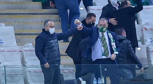 Alinur Aktaş, her golden sonra Bursaspor Başkanı Erkan Kamat'la birlikte büyük sevinç yaşadı.