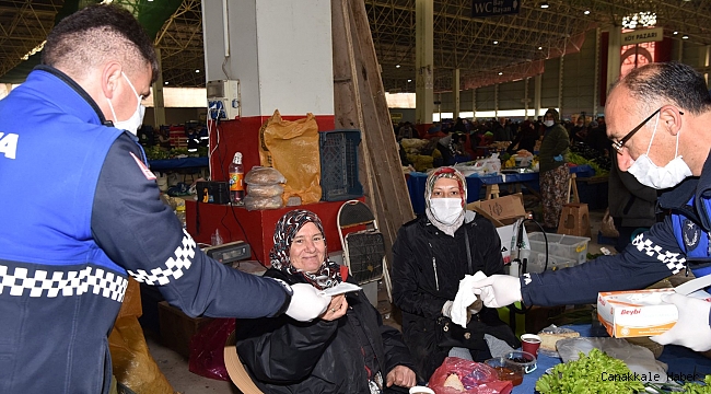 Çan ilçesinde pazar esnafına eldiven ve maske dağıtıldı.