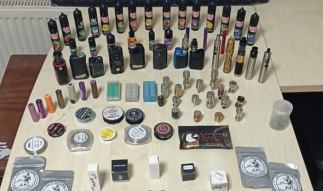 Çan ilçesinde düzenlenen operasyonda 496 parça elektronik sigara malzemesi ele geçirildi.