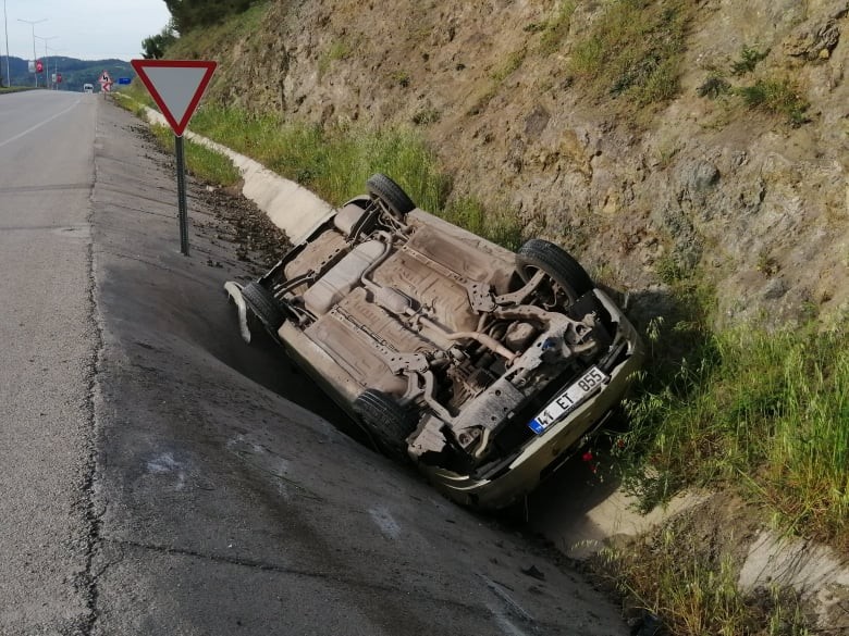 Edinilen bilgiye göre, oğlunu hastaneye götürmek için yola çıkan baba R. Sarı Tepeköy rampasında direksiyon hakimiyetini kaybederek takla attı.