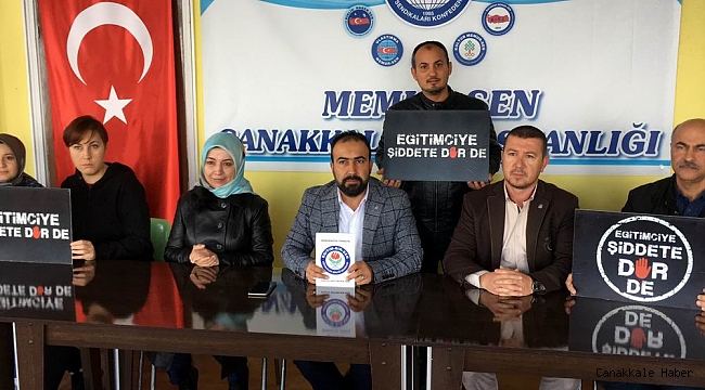 Eğitimciler olarak seslerinin duyulmasını, mesajların alınmasını, şiddete çözümün artık ertelenmemesini ve mesleğin daha fazla örselenmemesini istediklerini belirten Eğitim Bir-Sen Çanakkale Şube Başkanı Resul Can; “Eğitimciye şiddete dur demek, sesimizi yetkililere duyurmak, çözüm bulma iradesini harekete geçirmek için bir araya gelmiş bulunmaktayız. Gündemimiz net, hedefimiz tektir. Eğitimciler olarak sesimizin duyulmasını, mesajlarımızın alınmasını, şiddete çözümün artık ertelenmemesini, mesleğimizin daha fazla örselenmemesini istiyoruz. Şiddet, her geçen gün sayı olarak da yoğunluk olarak da artıyor, farklı faillerle yeni kulvarlar buluyor, en uzağında olması gereken yerlere bile giriyor; toplumsal bağlarımızı çözüyor, geleceğimizi karartıyor. Toplumsal değerlerimiz erozyona uğruyor, insana saygı azalıyor, hürmet yerini şiddete bırakıyor. Karakter eğiticisi, ruh işçisi, geleceğimizin mimarı öğretmenlerimiz, ince bir sanatı icra ederken kaba bir muameleye maruz kalıyor. Yusuf Elitaş, 15 Temmuz darbe ve işgal girişiminde hainlerin kurşunlarıyla şehit oldu. Şenay Aybüke Yalçın, ömrünün baharında, meslek hayatının başında teröristlerin kurşunuyla aramızdan ayrıldı. Necmeddin Yılmaz öğretmenimiz teröristler tarafından yolu kesilerek katledildi. Ayhan Kökmen öğretmenimizi, kendini bilmez birinin saldırısı sonucu, görevinin başındayken şiddete kurban verdik. Gülhan öğretmenimiz, okul çıkışında sokak ortasında sırtından bıçaklandı. Yücel Düzci öğretmenimiz, okul bahçesinde saldırıya uğrayan öğrencilerini korurken, gözü dönmüş saldırganların şiddetine maruz kaldı. Adına kütüphane yaptırdığımız Necmeddin Kuyucu öğretmenimiz, öğrenci kılıklı birinin bıçaklı saldırısı neticesinde hayatını kaybetti. Aslında kaybettiğimiz, sevgimiz, saygımız, merhametimiz, şefkatimiz, vicdanımız, izanımızdır” dedi.