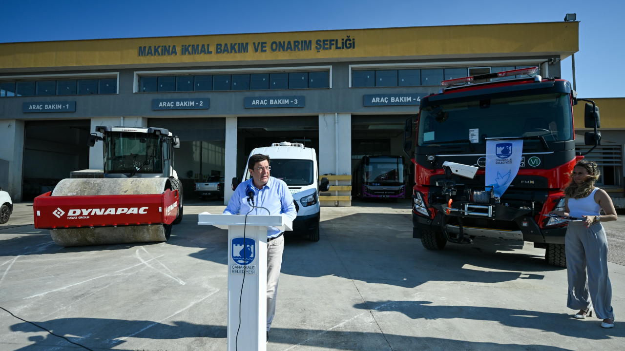 Kamu hizmetinin daha nitelikli bir şekilde sürdürülebilmesi için araç ve makine ekipmanlarının hızlı bir şekilde yenilenebilmesi adına çalıştıklarını ifade eden Başkan Erkek; “Her türlü ekonomik zorluğa rağmen, her türlü kesintiye rağmen, ciddi tasarruf tedbirleri uygulayarak ve ciddi bir bütçe disiplini ile hizmetlerimizi aksatmadan sürdürüyoruz. Bugün de çok önemli 3 aracımızın tanıtımını yapacağız. Biri yangın söndürme aracı. Bu itfaiyemize kazandırdığımız bir araç ve bu aracın katma değer vergisi ve diğer masrafları ile bize maaliyeti 22 milyon lira. Ancak farkı özellikleri olan bir araç. Belki de Türkiye'de yalnızca büyükşehirlerde olan bir araç ve bölgemizde yalnızca Çanakkale İtfaiyemizde olacak. 6x6 otomatik şanzımanlı olan aracın hareket kabiliyeti çok yüksek. Çanakkale Belediyesi İtfaiye Müdürlüğüne en zorlu arazilerde bile hareket ve söndürme kabiliyeti olan çok vasıflı bir araç kazandırdık. Bu aracımız orman yangınlarında da orman ekiplerine destek verebilecek” dedi.