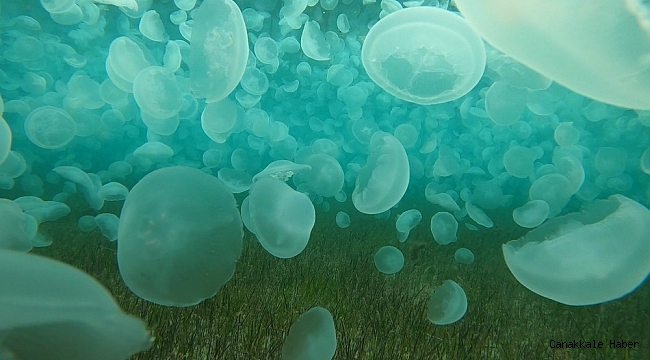 Çanakkale'de zıpkınla avladığı balıklarla adından söz ettiren rekortmen dalgıç Müjdat Turan, bu kez denizin dibinde yüzlerce ay denizanası görüntüledi. Yapılan araştırmalarda ay...