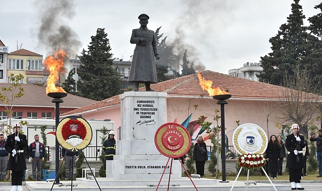 Gazi Mustafa Kemal Atatürk, vefatının 86. Yıldönümü nedeniyle Cumhuriyet Meydanı’nda tören düzenlendi. Törene Çanakkale Valisi Ömer Toraman, Çanakkale Belediye Başkanı Muharrem Erkek, Çanakkale Boğaz ve Garnizon Komutanı Tuğamiral Mustafa Biçen, İl Jandarma Komutanı Kıdemli Albay Ersin Aslan, ÇOMÜ Rektörü Prof. Dr. R. Cüneyt Erenoğlu, siyasi parti yöneticileri, öğrenciler, askeri erkan, daire müdürleri ve çok sayıda vatandaş katıldı.