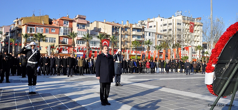Cumhuriyet Meydanı'nda saat 09.00'da başlayan törene, Çanakkale Valisi Orhan Tavlı, Çanakkale Boğaz ve Garnizon Komutanı Tuğamiral Levent Kerim Uça, Çanakkale Belediye Başkanı Ülgür Gökhan, AK Parti Çanakkale Milletvekili Jülide İskenderoğlu, bürokratlar, askerler, muharip gaziler, siyasi parti temsilcileri, STK temsilcileri katıldı. Çanakkale Valisi Orhan Tavlı, Çanakkale Boğaz ve Garnizon Komutanı Tuğamiral Levent Kerim Uça ve Çanakkale Belediye Başkanı Ülgür Gökhan, Atatürk Anıtı'na çelenk sundu. Şehitleri selamlamak adına Çanakkale Boğazı’nda TCG Heybeliada 21 pare top atışı yaptı. Daha sonrasında ise Türkiye Büyük Millet Meclisi tarafından Çanakkale'ye verilen ve üzerinde 'Çanakkale Geçilmez' yazan altın madalya, Vali Orhan Tavlı, Boğaz ve Garnizon Komutanı Tuğamiral Levent Kerim Uça ile Belediye Başkanı Ülgür Gökhan tarafından Türk bayrağına takıldı. Şehitler için saygı duruşunda bulunulmasının ardından Boğaz Komutanlığı Bandosu eşliğinde İstiklal Marşı okundu. ‘Çanakkale Geçilmez’ yazılı altın madalya Türk bayrağı ile birlikte göndere çekildi.