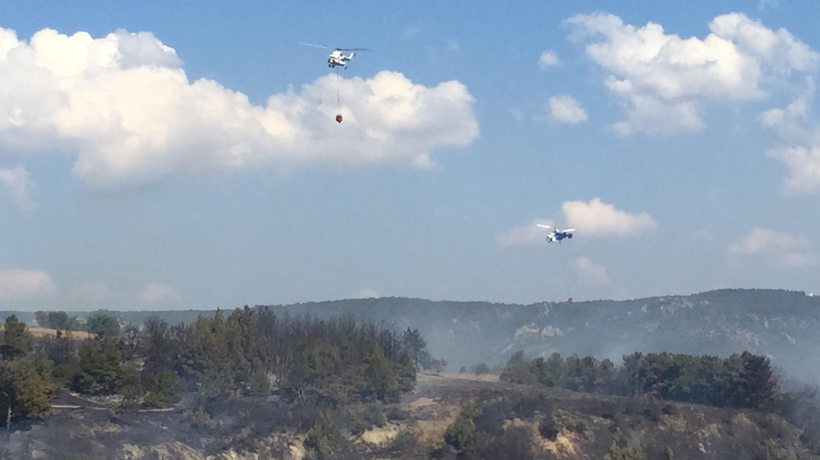 Çanakkale’de çıkan yangın devam ediyor. 10 hektarlık alan yandı.